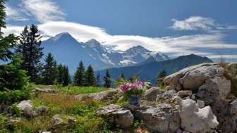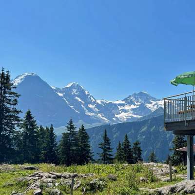 Mit der einmaligen Aussicht auf Eiger, Mönch und Jungfrau.