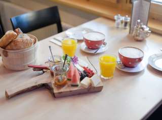 Lokal und authentisch ist die Philosophie und das, was auf der Speisekarte steht. Spezialitäten von der umliegenden Landwirtschaft – einfach, originell und überraschend angerichtet. Täglich frischer Kuchen aus hauseigener Patisserie laden ein, bei traditioneller und modern Interpretierter Esskultur die Seele baumeln zu lassen.