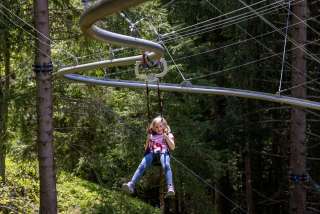 Die Fly-Line ist ein Edelstahlrohrsystem aufgehängt an Holzmanschetten an Bäumen im Wald, an welchem du in einem Gurtsystem sitzend an Rollen mit 8 bis 12 km/h durch den einzigartigen Lebensraum schwebst. Ziel ist es, die Umgebung zu geniessen, abzutauchen in die Welt des Waldes und entschleunigt wieder am Start anzukommen.