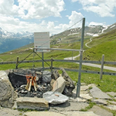 Zugang: Zur Feuerstelle findet man über den Wanderweg zwischen Schreckfeld und Grosse Scheidegg. Der Wanderweg folgt der geteerten Strasse und ist gut begehbar. Alternativ kann man auch dem Wanderweg zwischen First und Grosse Scheidegg folgen. Die Feuerstelle liegt etwas unterhalb dieses Wanderweges.