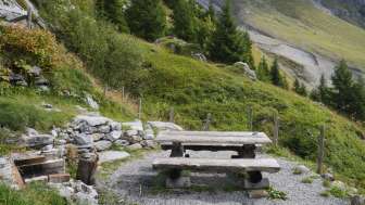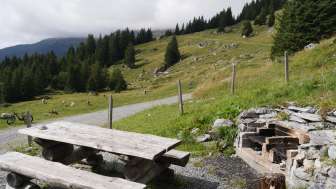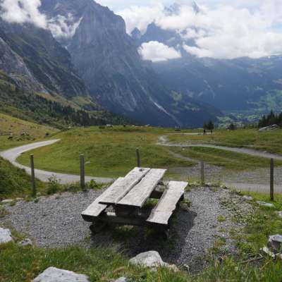 Die gemütliche Grillstelle mit Unterstand (1813 m ü. M.) befindet sich direkt am Wanderweg Grosse Scheidegg – Grindelwald. Das Tal von Grindelwald liegt ausgebreitet vor uns in der Abendsonne.