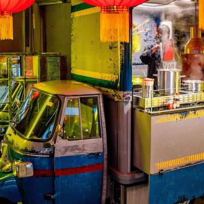 Die gestylte King Noodle Bar in der Talstation Grindelwald Terminal hält unterschiedlichste Varianten an warmen Gerichten bereit, und anstehen braucht man kaum – alles kommt frisch und schnell über die Theke.