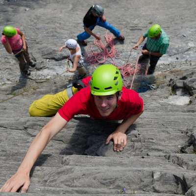 Direkt beim Eingang zur Gletscherschlucht befindet sich der Klettergarten. Ob Beginner oder Fortgeschrittene, jeder findet hier die passende Herausforderung.