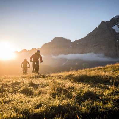 Unterwegs auf zwei Rädern. Entdecke die Bergwelt von Grindelwald mit dem Mountainbike. Mit einem Klick auf den Button gelangst du zur Übersicht aller Trails.