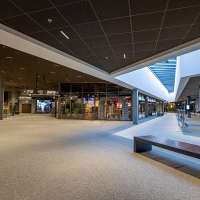 Die Toilettenanlage befindet sich in der Haupthalle des Terminals, gegenüber von der Coop-Filiale.
