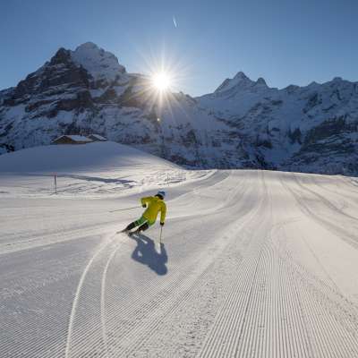 Das und vieles mehr bietet das Skigebiet Grindelwald-First. Insgesamt stehen dir hier 56 Pistenkilometer und 40 Kilometer Wander- und Schlittelwege zur Verfügung.