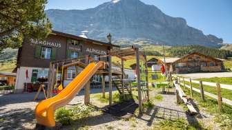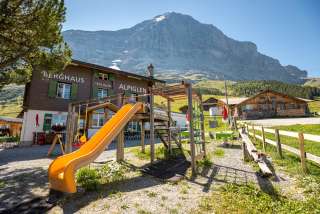 Nach einer langen Wanderung kannst du im Berghaus Alpiglen wieder Kraft auftanken, während sich die Kinder weiter auf dem Spielplatz austoben können. Das Ganze mit einer wunderschönen Aussicht auf die umliegenden Berge.