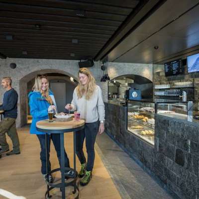 Geniessen Sie Drinks und Loaded Fries auf der grossen Sonnenterrasse direkt an der Skipiste bei der Sesselbahn Eigernordwand. Oder drinnen, während Sie einen Blick auf die hauseigene Gin-Destillerie werfen.